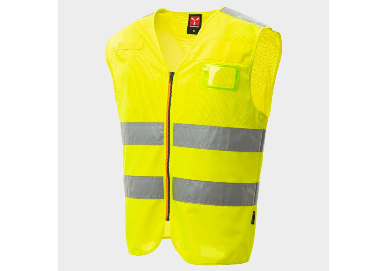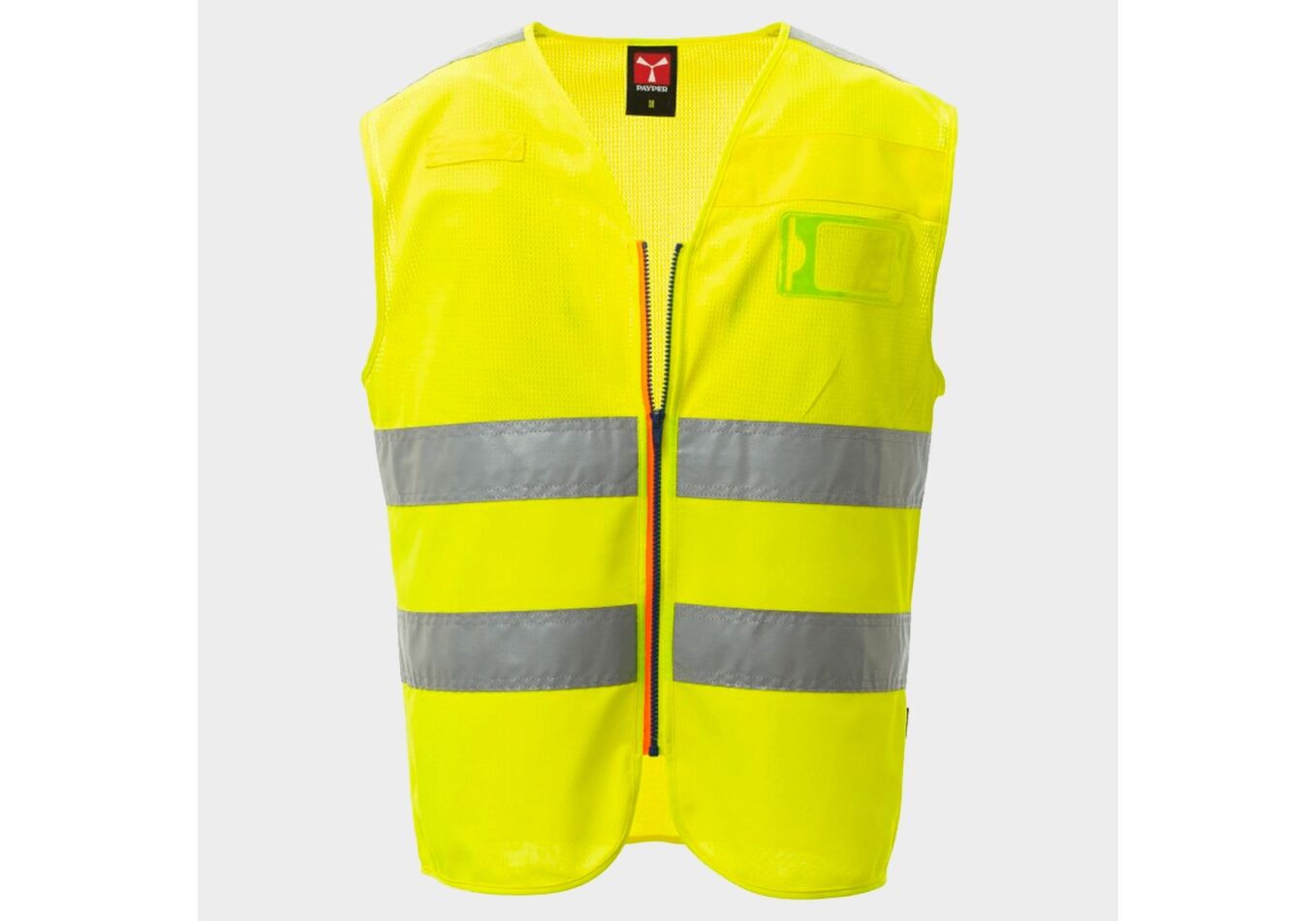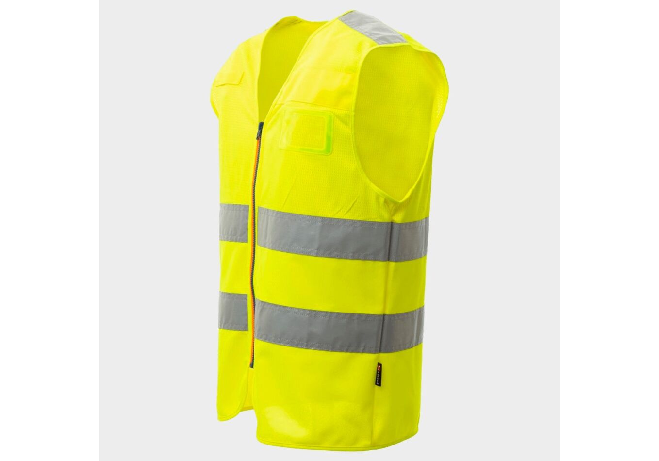 Γιλέκο σήμανσης με ανακλαστικές λωρίδες, κατασκευασμένο από ελαφρύ διχτυωτό υλικό στο επάνω μέρος και υλικό dry-tech για περισσότερη άνεση στο κάτω μέρος. Τάξη 2.