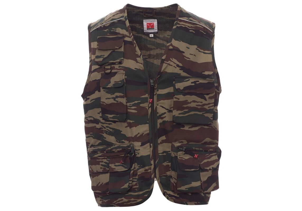 | Καλοκαιρινό γιλέκο, σύστημα στερέωσης με φερμουάρ, σύστημα μπροστινής τσέπης με αναστρέψιμο στήριγμα κονκάρδας, αντανακλαστική σωλήνωση στους ώμους και την πλάτη, ευρύχωρη τσέπη κυνηγιού στην πλάτη. Επένδυση ξηρής τεχνολογίας σε αντίθεση, ανοιχτή για ευκολότερη εκτύπωση και κέντημα. ΥΛΙΚΟ: 80% πολυεστέρας, 20% βαμβάκι, 190 g / m² |