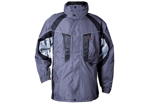 Αδιάβροχο μπουφάν με αντανακλαστικές σωληνώσεις, μεγάλες τσέπες και κλείσιμο με φερμουάρ/κουμπί. Κουκούλα ενσωματωμένη στο γιακά. ΥΛΙΚΟ: πολυεστέρας/PVC