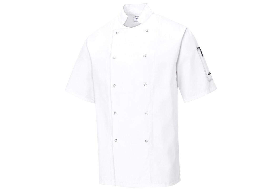 Σακακι σεφ με κοντά μανίκια και κλείσιμο με μπουλόνι. ΥΦΑΣΜΑ: βαμβάκι / πολυεστέρας, 190 g / m