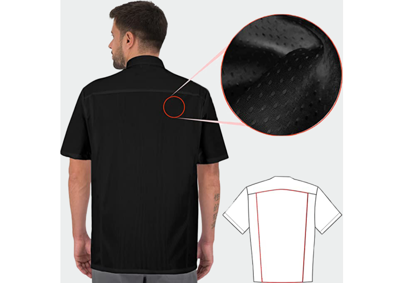 Το μπουφάν σεφ έχει μοντέρνα εμφάνιση και καθαρές γραμμές, κατασκευασμένο από 65% PE και 35% P με πυκνότητα υφάσματος 200 g/m². Εξαιρετικά ελαφρύ και αέρινο ύφασμα που ταιριάζει τέλεια στο σώμα. Η σιλουέτα έχει ίσια, χαλαρή εφαρμογή που επιτρέπει ελευθερία κινήσεων.