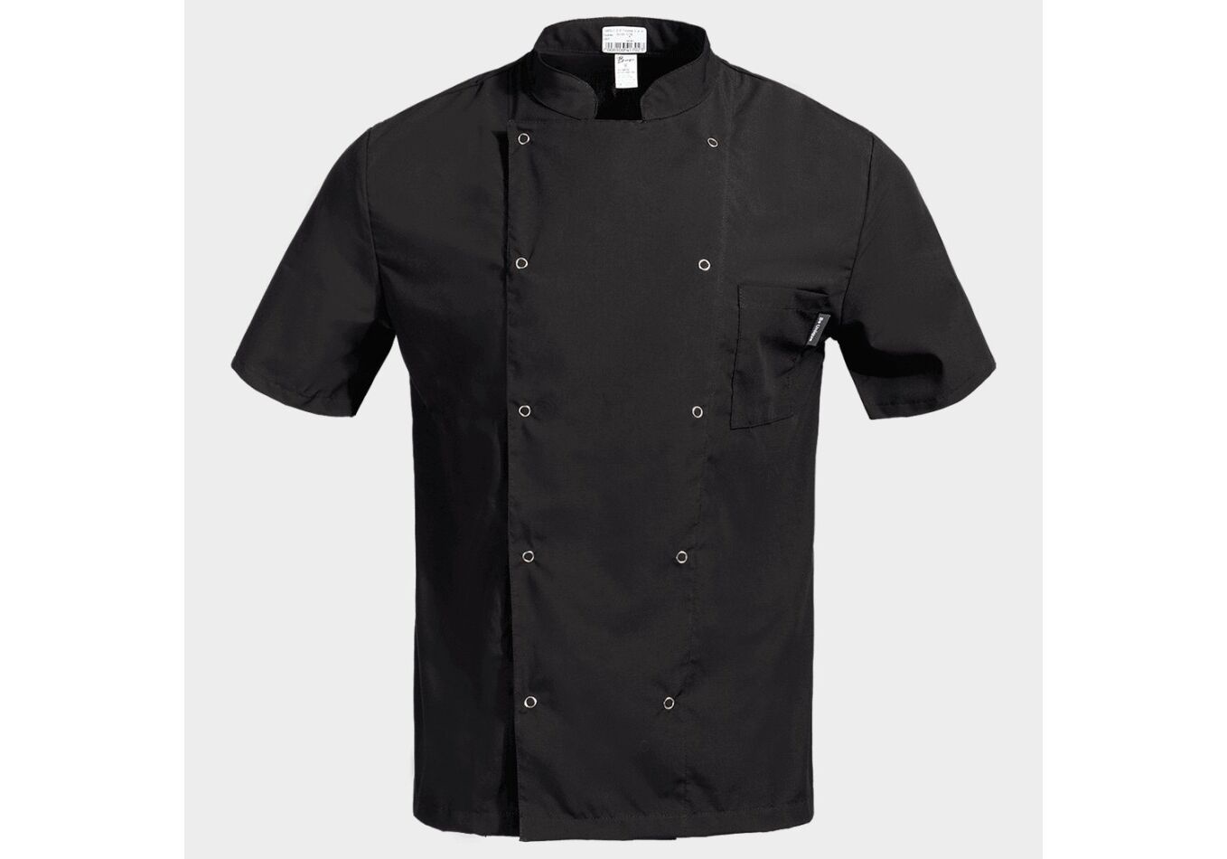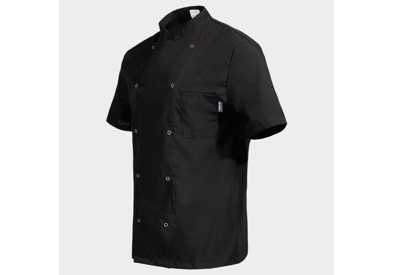 Σακάκι κουζίνας με κοντό μανίκι, κατασκευασμένο από υψηλής ποιότητας ύφασμα που αναπνέει. Παρέχει άνεση και ελευθερία κινήσεων κατά τη διάρκεια πολλών ωρών εργασίας. Διπλό κούμπωμα με κουμπιά tic-tac και λειτουργικές τσέπες στα μανίκια. Εύκολο στη συντήρηση και κατάλληλο για εντατική χρήση.