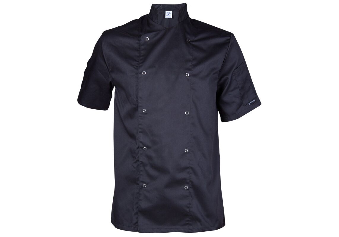 | Σακακι σεφ με κοντά μανίκια και κλείσιμο με μπουλόνι. ΥΦΑΣΜΑ: βαμβάκι / πολυεστέρας, 190 g / m² |