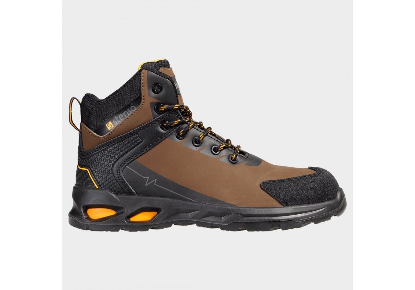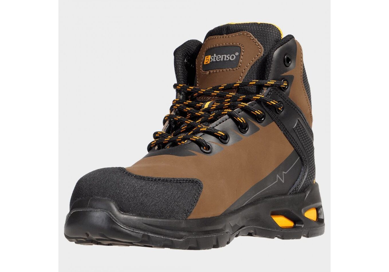Ένα στιβαρό μποτάκι που παρέχει δύναμη και άνεση σε κάθε βήμα. Το πάνω μερος είναι κατασκευασμένο από υδατοαπωθητικό nubuck, σε συνδυασμό με λεπτομέρειες Oxford. Το εσωτερικό μέρος είναι κατασκευασμένο από διχτυωτό ύφασμα που αναπνέει και ανθεκτικό στη φθορά, εξασφαλίζοντας άνετη και μακροχρόνια χρήση. Το μπροστινό μέρος του παπουτσιού είναι ενισχυμένο με ελαφρύ αλλά σκληρό fiberglass, προσφέροντας επιπλέον προστασία. Η πλάκα Kevlar® το κάνει ακόμα πιο δυνατό χωρίς να παρεμποδίζει την ευελιξία του παπουτσιού. Η σόλα είναι κατασκευασμένη από PU/PU και παρέχει εξαιρετική σταθερότητα και πρόσφυση.